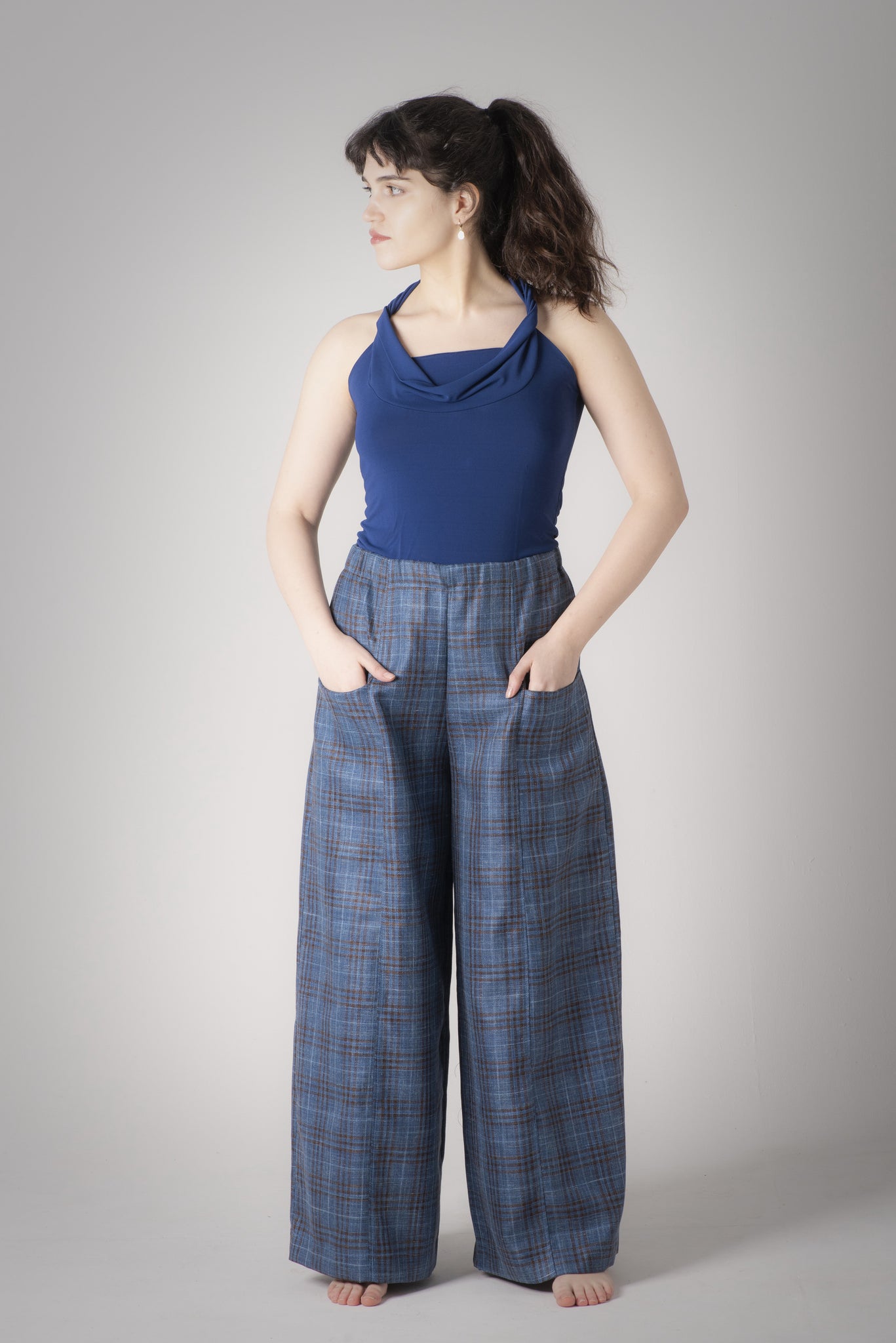 ha una gamba ampia a palazzo e due ampie tasche laterali.